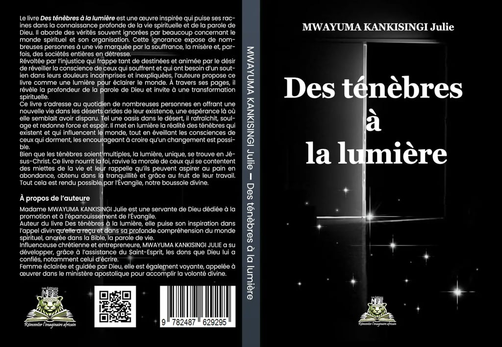 NOUVELLE PARUTION — Les Éditions NGE Des ténèbres à la lumière de MWAYUMA KANKISINGI Julie : un appel à la guérison, à la clarté et à la transformation intérieure, fondé sur la Parole de Dieu. Un livre-phare pour traverser l’épreuve et retrouver l’espérance. ISBN 978-2-487-62929-5 • Commande : publication@leseditionsnge.com | +243 972 731 978 #Foi #Espérance #Transformation #LesEditionsNGE