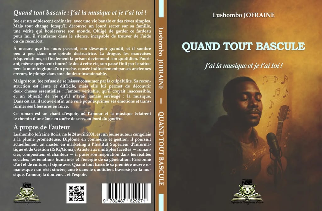 À travers son premier roman Quand tout bascule, Lushombo Jofraine signe une œuvre intime et bouleversante où la musique et l’amour deviennent des refuges face à la douleur. Publié par Les Éditions Nge, ce récit vibrant donne voix à une jeunesse en quête de sens et de lumière.
